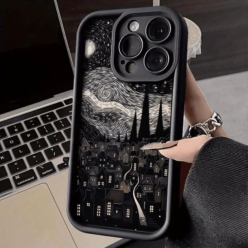 Protege tu teléfono con estilo artístico. Esta funda combina la icónica Noche Estrellada de Van Gogh con una vista nocturna de la ciudad, creando un diseño único y cautivador. Fabricada con materiales de alta resistencia, absorbe impactos y protege contra caídas sin comprometer la elegancia. Los gráficos originales se mantienen vibrantes y nítidos, transformando tu dispositivo en una obra de arte portátil. Ideal para quienes valoran la protección y la expresión personal.